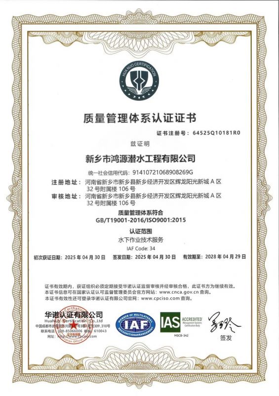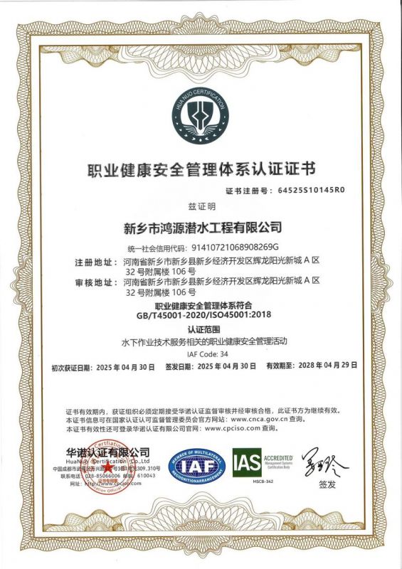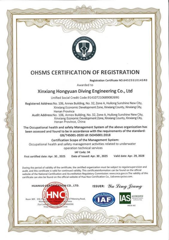 新鄉(xiāng)市鴻源潛水工程有限公司,有從事潛水行業(yè)二十多年的潛水團隊。公司具有獨立法人資格,注冊資金600萬元。   公司的潛水人員、潛水檢測人員、潛水焊接人員均經(jīng)過正規(guī)培訓(xùn),全部持有國內(nèi)權(quán)威機構(gòu)頒發(fā)的資質(zhì)證書。我公司水下焊接可靠,質(zhì)量優(yōu)良,技術(shù)過硬,可水下焊接鋼管樁,水下焊接犧牲陽極鋅塊,水下焊接連接梁,水下封堵焊接等等施工,報價合理,拒絕暴利,竭誠為您服務(wù)!水下電焊工程,水下電焊報價合理水廠電廠的水池、水道清淤、泵房清理、管道鋪放、攔污柵清污、更換閘門起落、導(dǎo)流洞、水庫壩體等維修施工水下補強加固:對水利電力系統(tǒng)水庫、大壩及沿海內(nèi)河港口、碼頭等水工建筑物水下鋼結(jié)構(gòu)或混凝土結(jié)構(gòu)缺陷進行。無論是對現(xiàn)在或?qū)恚紝⑹且豁椃浅S幸饬x的工作。水下焊接將成為水下作業(yè),水下安裝,水下維修等水下作業(yè)工程中不可或缺的重要工藝手段.公司堅持“先進的技術(shù)設(shè)備.優(yōu)質(zhì)的服務(wù)質(zhì)量.服務(wù)效率.熱情的服務(wù)態(tài)度,為生產(chǎn)經(jīng)營理念,以拒絕暴利合理收費為原則立足全國市場。我們將以優(yōu)質(zhì)的產(chǎn)品與售后服務(wù)來打造用戶良好體驗。愿同新老客戶竭誠合作、互惠互利、共創(chuàng)輝煌!水下電焊工程,水下電焊報價合理,鋼圍堰清淤公司鴻源-水下電焊工程,水下電焊報價合理,鋼圍堰清淤公司,水下電焊工程。      新鄉(xiāng)市鴻源潛水工程有限公司我公司成功打造鴻源優(yōu)質(zhì)服務(wù)。公司的潛水人員、潛水檢測人員、潛水焊接人員均經(jīng)過正規(guī)培訓(xùn),全部持有國內(nèi)權(quán)威機構(gòu)頒發(fā)的資質(zhì)證書。經(jīng)過多年經(jīng)營,公司具備公司具有獨立法人資格。